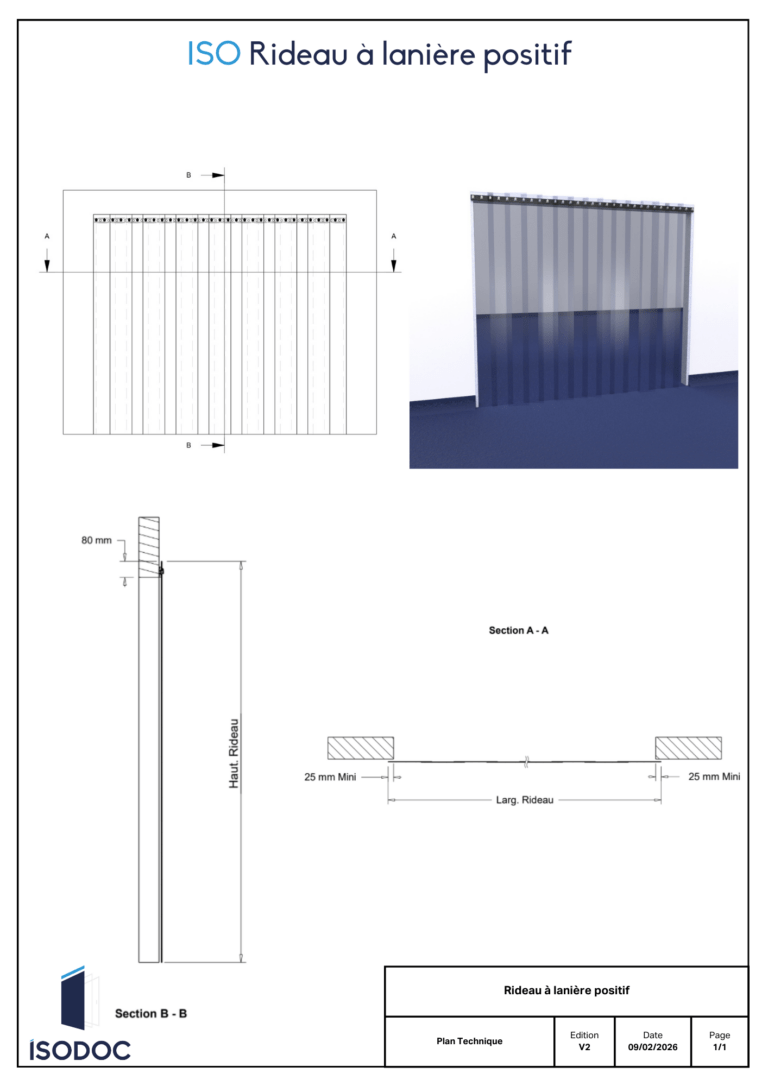 Rideau à lanières pour des températures allant de -10°C à +50°C.