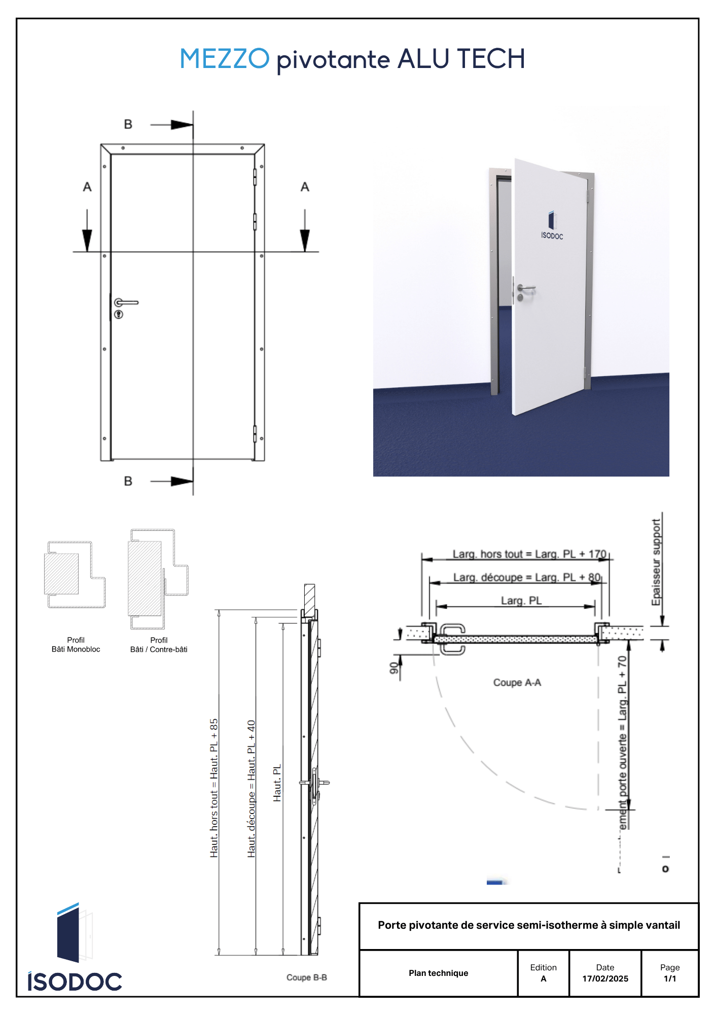 Vantail monolithique d’une épaisseur de 44 mm, constitué de deux parements métalliques injectés en mousse PUR haute densité (45kg/m3).
