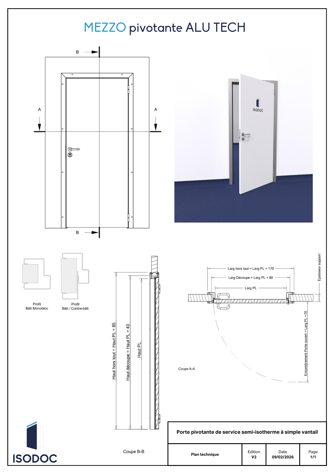 Huisserie aluminium (alu anodisé ou laqué blanc en standard / inox en option), monobloc ou bâti/contre-bâti au choix.