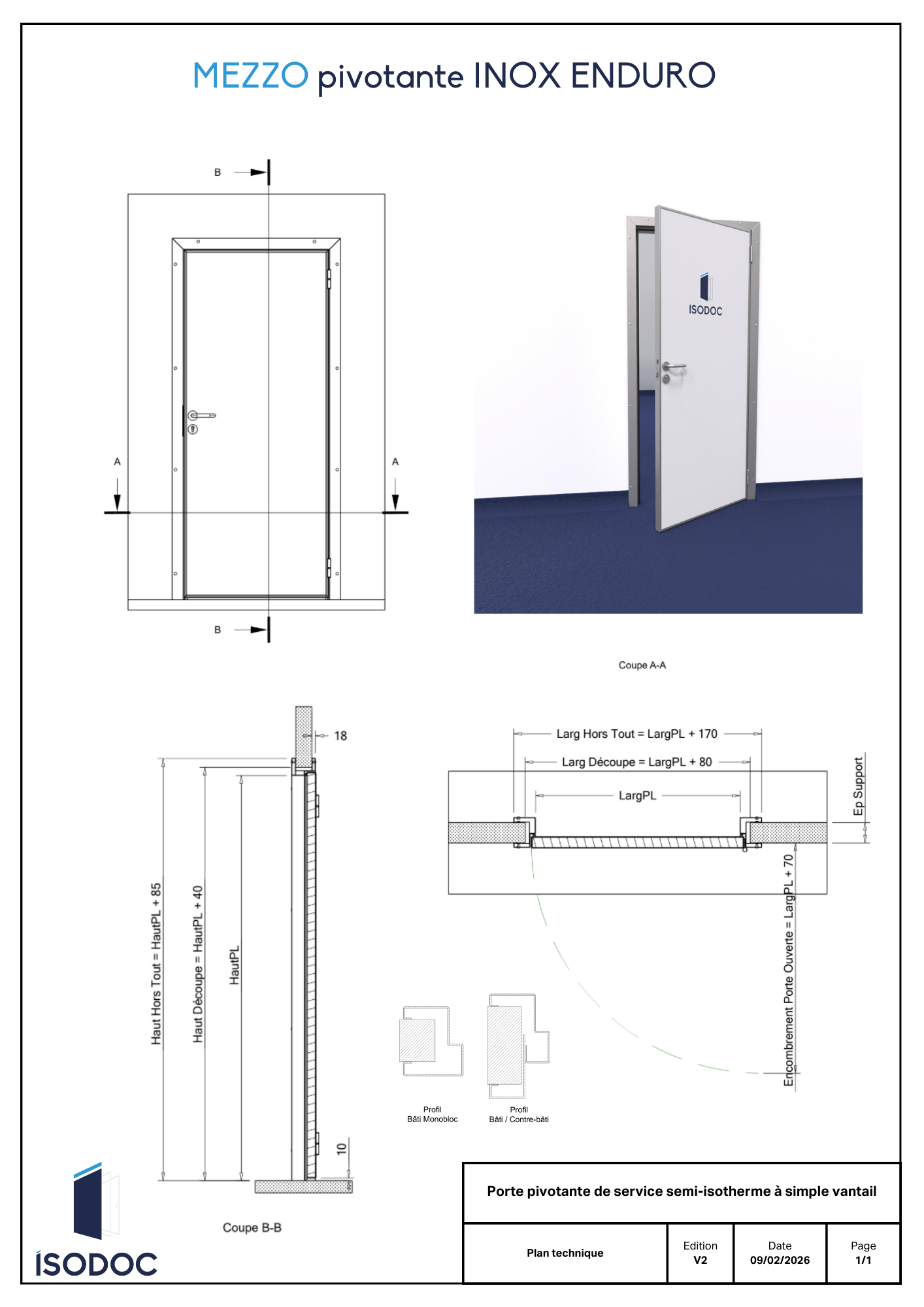 Huisserie inox, monobloc ou bâti/contre-bâti au choix.