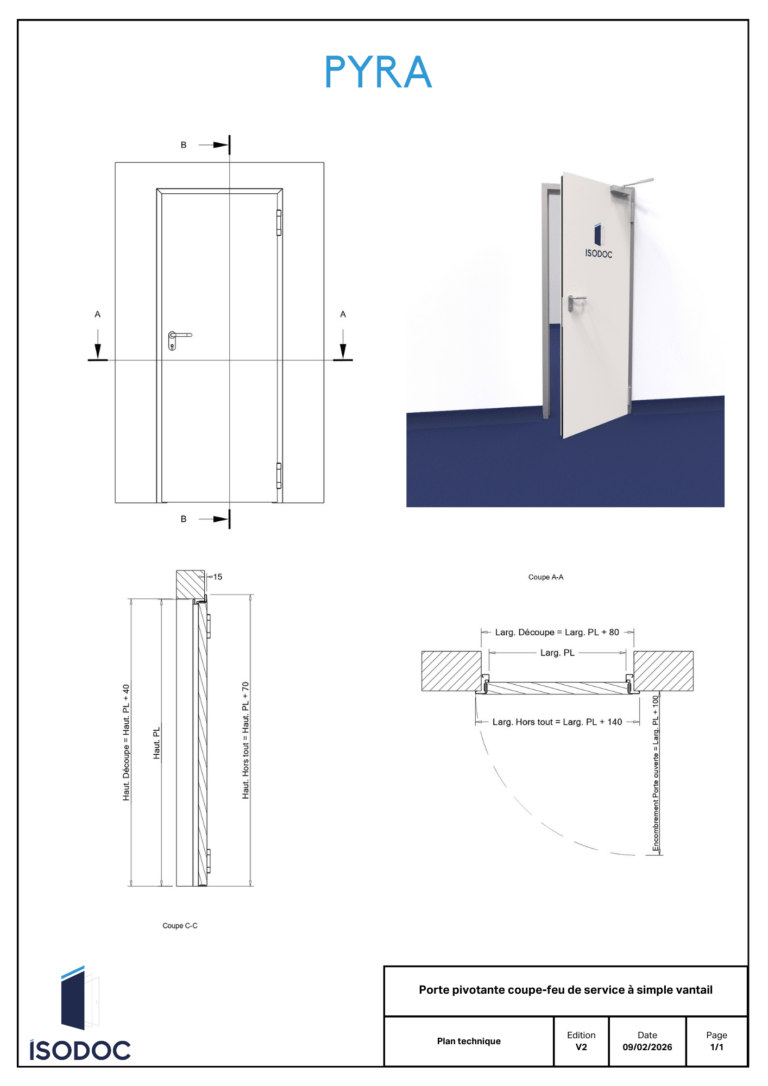 Porte PROGET coupe-feu EI2 60 (EI1 30) P.V. 14-A-032.
