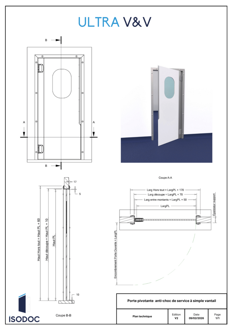 Vantail polyéthylène haute densité blanc d’une épaisseur de 15 mm avec hublot encastré.